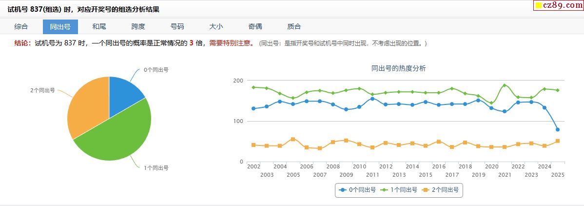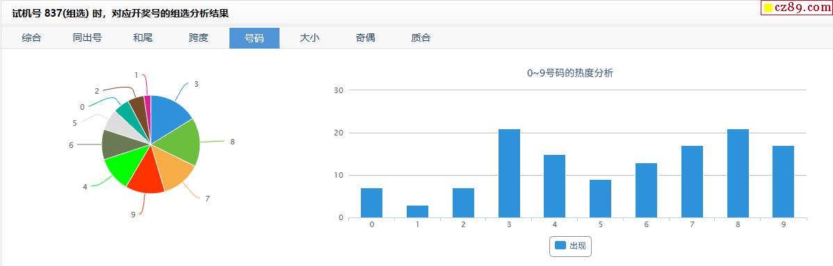 > 310期福彩3D试机号837对应开奖号的组选分析结果